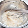 ボウルに①と鶏ひき肉、【A】を入れて、泡だて器でよく混ぜ合わせる。