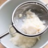 絹豆腐は水切りして、茶こしやザルでなめらかにする。